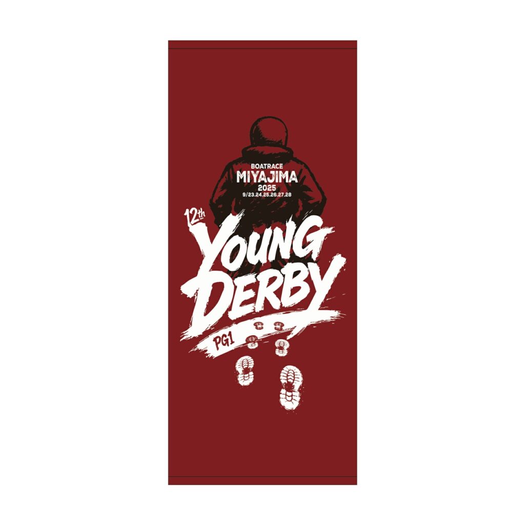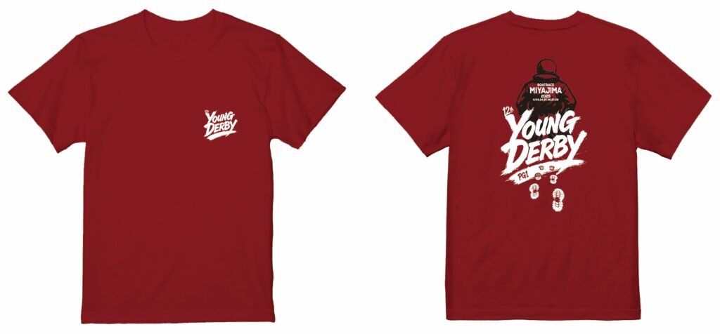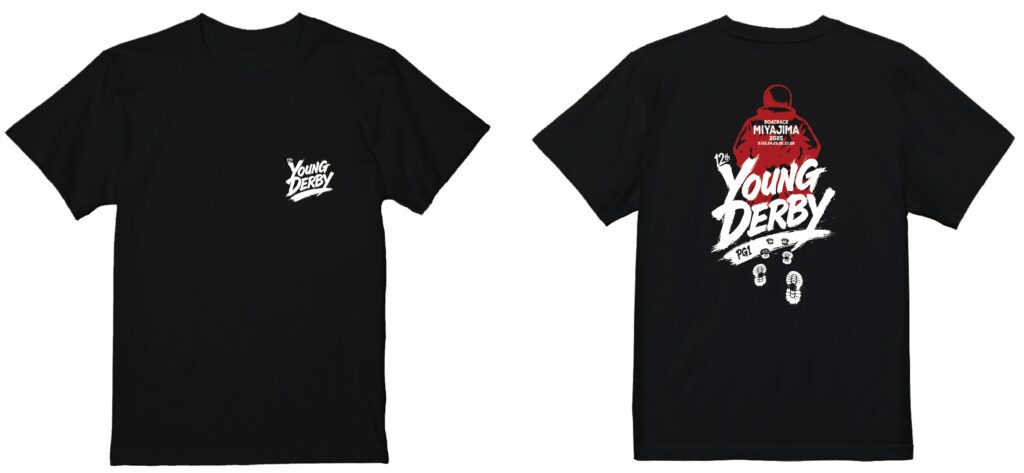 背中には勝負に挑むレーサーの後ろ姿と「YOUNG DERBY」の大会ロゴを大胆にプリント。足元に続く足跡は、頂点を目指す若手レーサーたちの軌跡を表現しています。